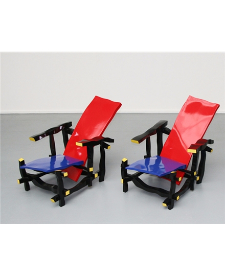 The red blue chairs are one of the most famous representative works of De Stijl (Neoplasticism). The red blue chairs were designed in 1917-1918. They were not colored at that time. The colored version has been shown until 1923. This chair is entirely made of wood. The 15 wooden strips are perpendicular to each other to form the spatial structure of the chair. Each structure is fastened with screws instead of the traditional splicing method to prevent damage to the structure. This chair was originally painted gray-black. Afterwards, Ritterveller strengthened the structure by using simple bright colors, making it completely uncovered and repainted, so that a red backrest and a blue cushion are made. The red blue chair has radical pure geometry and unimaginable form. In terms of form, it is the three-dimensional interpretation of the artist Mondrian's works Red, Yellow and Blue. The artist is known for using the color relationships in an unbalanced grid to achieve visual balance.