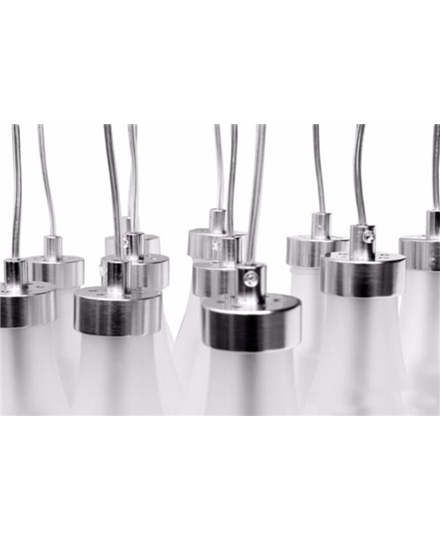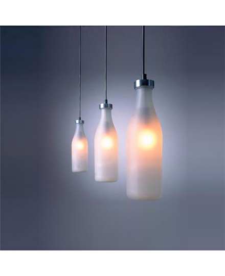 This work is also one of the early productions of Dutch Droog design. Milk bottles are conveniently packed in three rows and four rows, suspended above the floor, and fluid white light flows from the bottles. The design gives the luminaire a powerful artistic presence. A total of three rows and four cans are combined in the style of traditional Dutch milk cans. In the past, the beautiful day refined the design, paying tribute to the past with the concept of modernity. This product can also be used as a lamp with a single milk bottle.