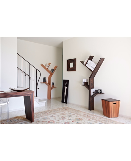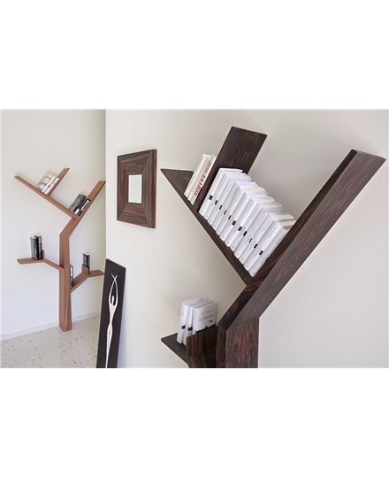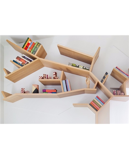 The wooden bookshelf is designed for children, transforming the imagery of the trees into a simple structure, the shelves are in the shape of trees, and their outstretched branches climb the walls to provide space for books and other small items. The wooden bookshelf is made of solid wood including grey wood, ebony or tineo. It can be assembled and hung on the wall within 10 minutes. It can be supported by only two screws.