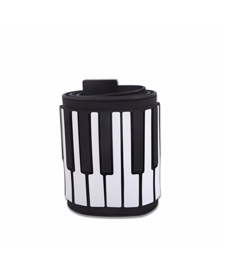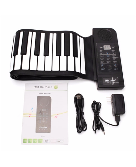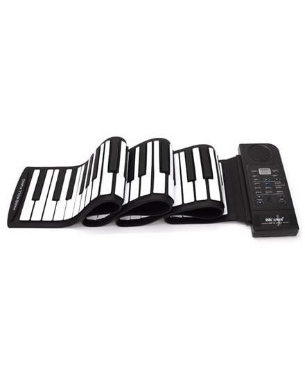 Yamano called it a "hand roll piano". The folded piano keyboard can be directly connected to a computer and is played with MIDI software, and it is easy to carry with you. Its small size can provide 128 timbres such as violin, saxophone, and 20 songs and 100 rhythms.