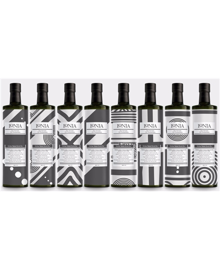 Olive oil packaging: As the ancient Greeks used to paint & design each olive oil amphora (container) separately, they decided to do so today! They revived and applied this ancient art and tradition, in a contemporary modern production where each and every one of the 2000 bottles produced have different patterns. Each bottle is individually designed. It is a straight developing creative line. Every production line create 2000 different designs.